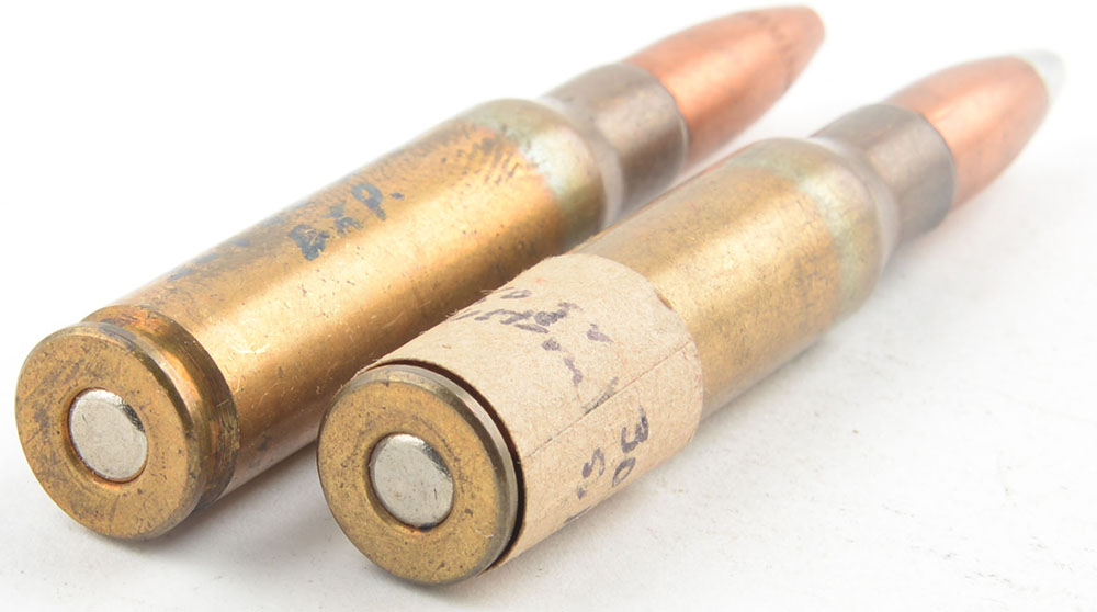 Lot of 2, (1) Winchester Experimental 30-80-15 silvertip, No H/S, Win's Prototype .308, (1) same thing except hollow point, not silvertip. Grade: Very Good + - Value: 20 to 60