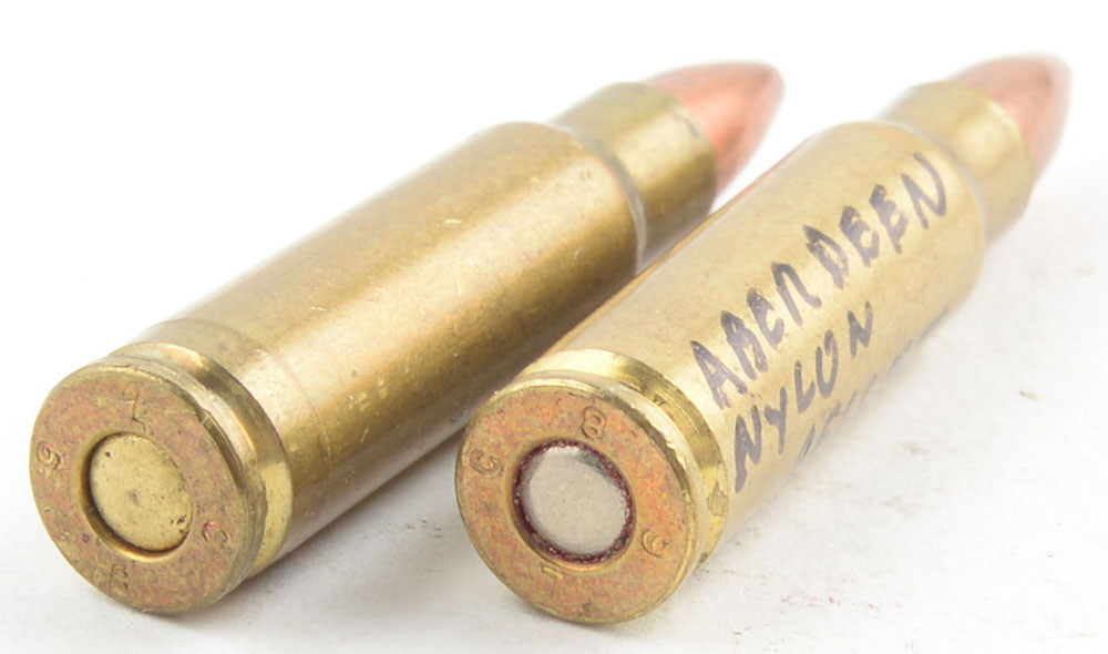 Lot of 2, .22 cal Aberdeen PDW experimental using M1 carbine cases, H/S: ''LL 68''. Grade: Excellent - Value: 30 to 60
