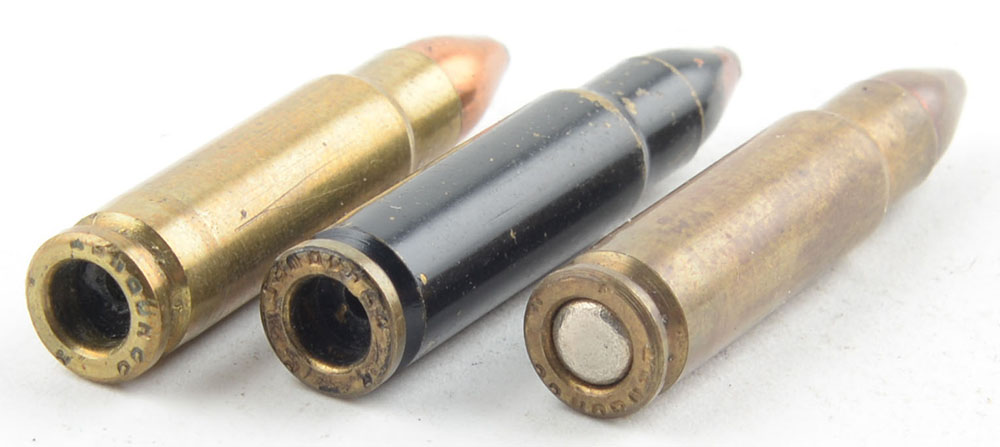 Lot of 3, 22 Colt's Amp, H/S: '' R P 22 Hornet'', (1) loaded ball rd, (1) dummy no primer, (1) blacked case dummy. Grade: Very Good - Value: 30 to 60