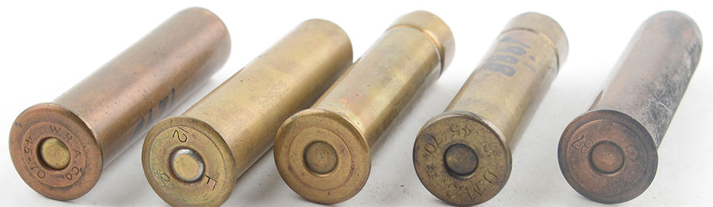 Lot of 5, 45-70 Gallery Practice, round lead ball, F 3 87. F 12 90, S UMC H, WRACO, 1 no h/s. Grade: Very Good - Value: 40 to 100