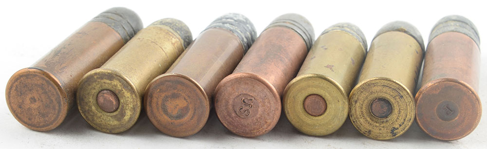 Lot of 7, 44 Ballard, 4 rimfire, 3 center fire, U & P raised in circular indent, no h/s 1 possibly made by FVV & Co, the center fires all no h/s. Grade: Excellent - Value: 80 to 120