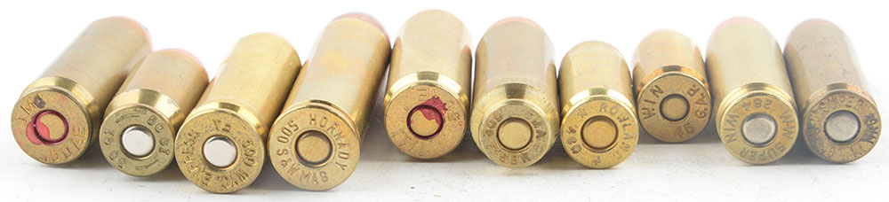 | Lot of 10. Large Caliber Pistol Cartridges. One of each: .45 ...