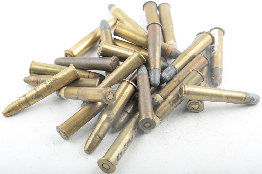 Lot of 28. Large Bore Military Cartridges. (7) 11mm Mauser, 6--FN Lead, 1--RN Lead. (8) 11mm Spanish Remington, RN Lead. (5) 11mm Mannlicher (Werndl), RN PP Lead. (5) 11mm Spanish Reformado, FN Brass Jacket. (2) 11mm Gras, FN Brass Jacket. (1) 11mm Bulgarian, RN CJ FMJ. Most have a military style headstamp. Grade Very Good - Value: 20 to 40