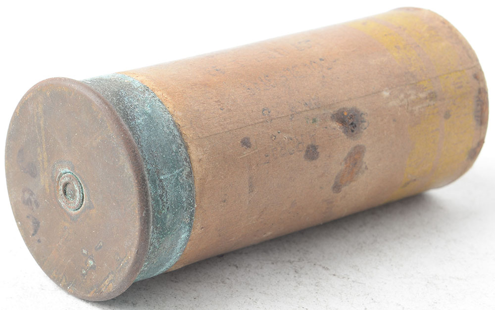 H/S: none, No 3ga, 3 13/16'' OAL. Loaded tan paper, TW: ''Yellow'', flare shell. Grade: Very Good - Value: 10 to 100