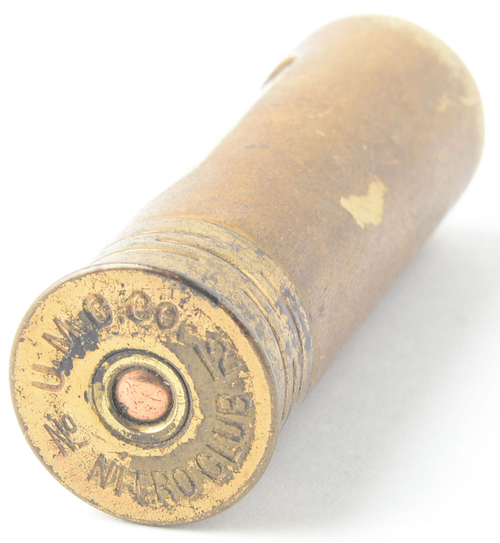 Window Shell, H/S= ''U.M.C. Co. No 12 Nitro Club'', 2 1/2'' OAL, salesman sample in tan paper case. Grade: Very Good + - Value: 10 to 80