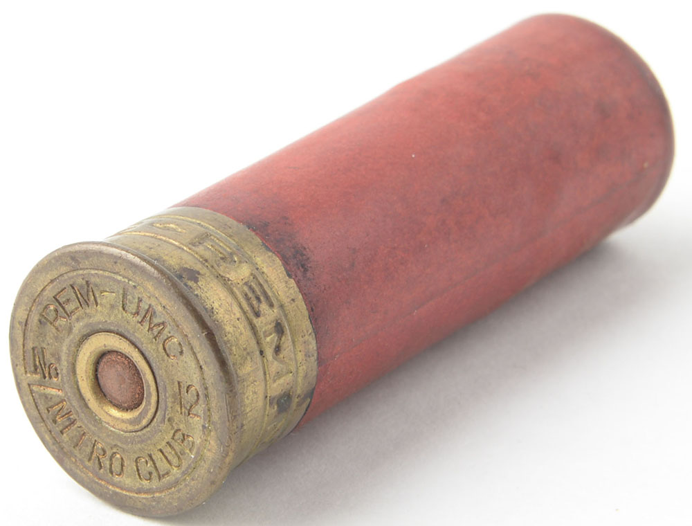RARE! REM-UMC NITRO CLUB, Top Wad Brant Load 12ga, loaded red paper case, 2 1/2'' OAL. Grade: Excellent - Value: 40 to 100
