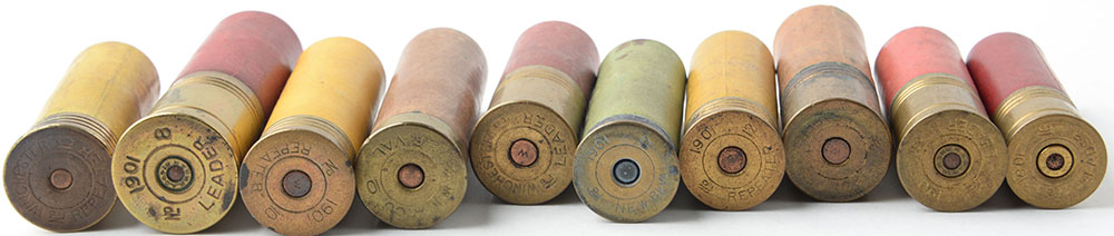 | Lot of 10 paper shotshells with rare mixed top wads. Grade: Exc...