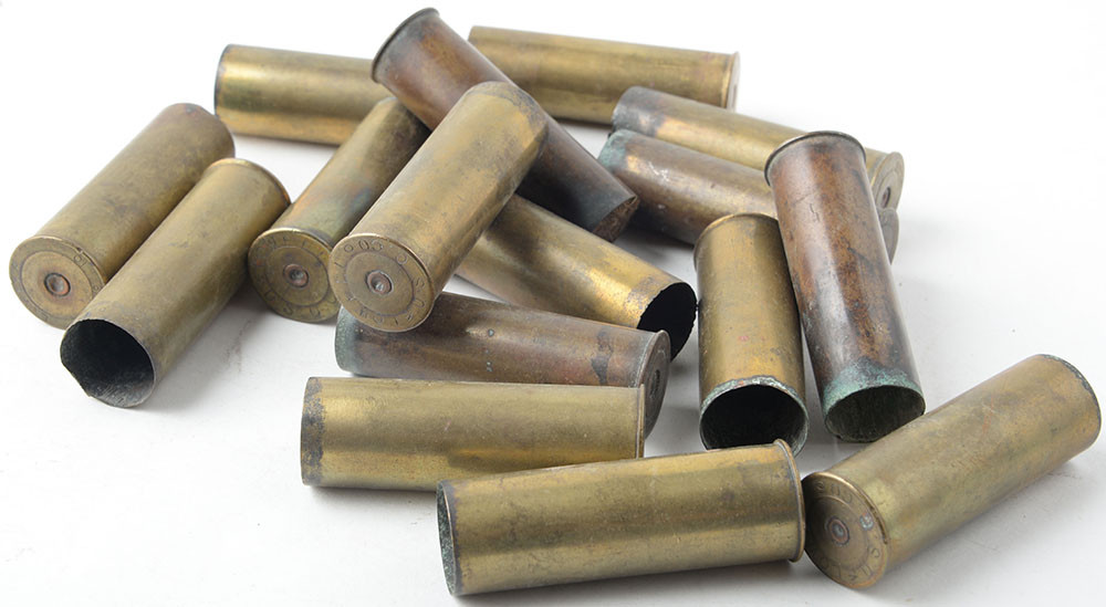 | Large lot of brass shotshells. Grade: Very Good + - Value: 2...