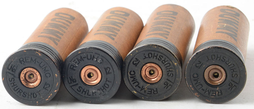 Lot of 4 REM-UMC Shurshot 12ga, loaded tan paper cases, 2 3/8'' OAL. Grade: Very Good ++ - Value: 10 to 50