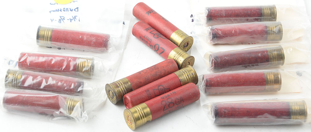 | Large lot of 28ga loaded paper shotshells. Grade: Excellent - ...
