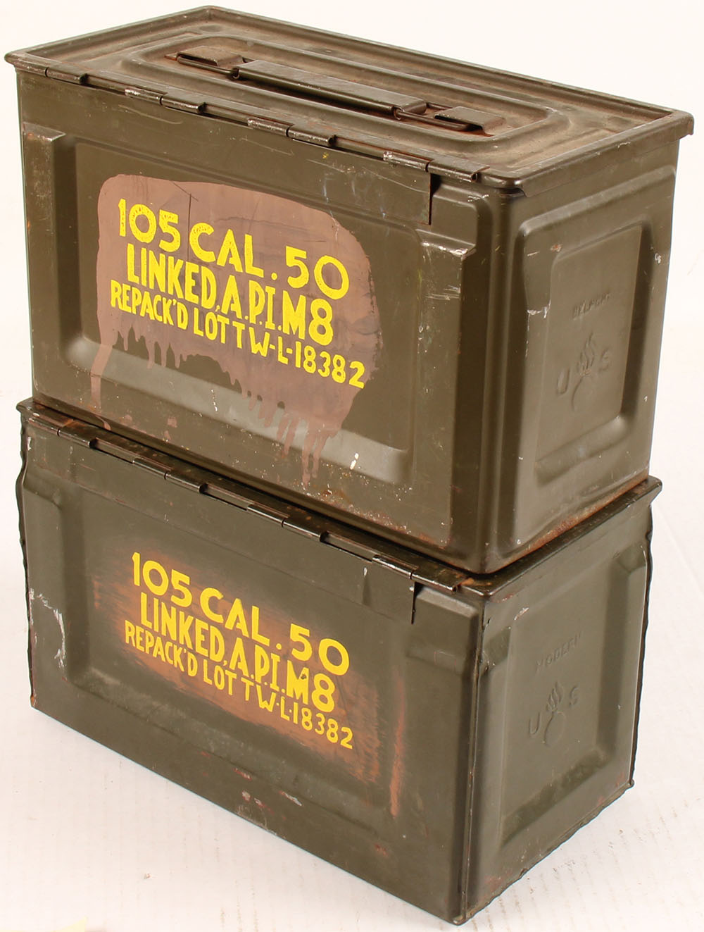 | Lot of two, .50 Cal, side opening ammo cans, empty, insides are ...