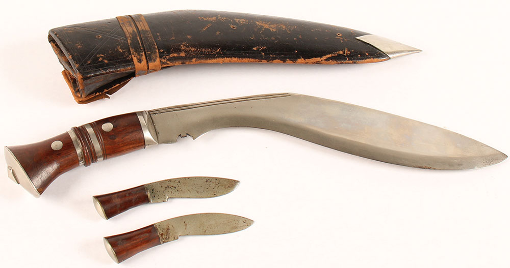 | Unmarked, Nepalese, Kukri with Karda & Chakma set with a leathe...