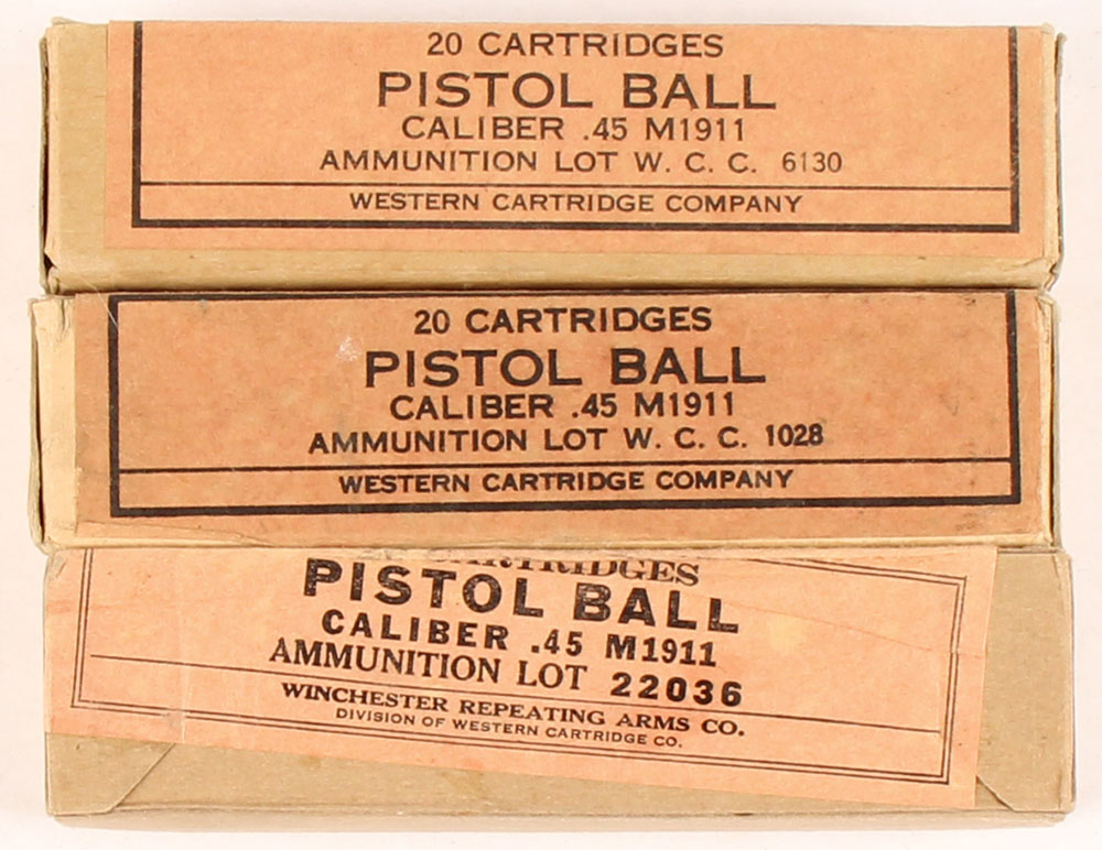 | Lot of three, Winchester/western, .45 M1911 Pistol Ball (.45 ACP...