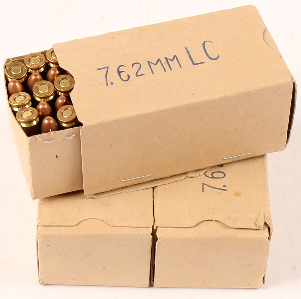 Lot of three, Chinese, 7.62mm (.30 Carbine) 50 Rd. Box's, both Full, ammo is excellent but is known to be Berdan primed & corrosive. Grade: Excellent - Value: 20 to 40