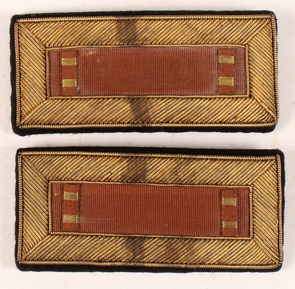 US, Post 1902, Lieutenant Shoulder Boards, Maroon with gross grain backing & solid thread. Has some color fading & a couple stains. Grade: Very Good - Value: 40 to 100