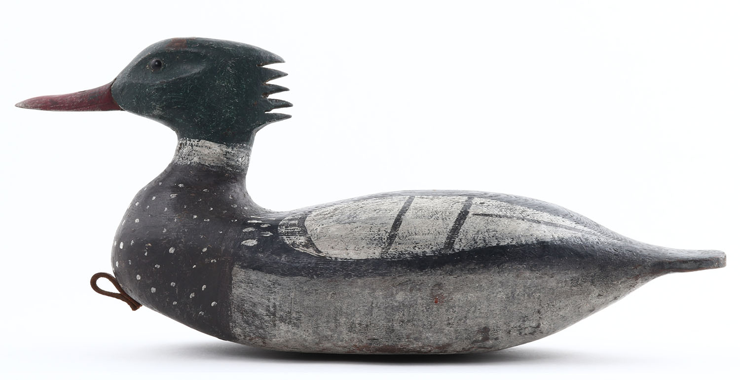 Hooded Merganser Drake by R.W. Schaap, GE, solid cedar wood, original paint, structurally excellent, signed on bottom, 16'' OAL. Grade: Excellent - Value: 150 to 400