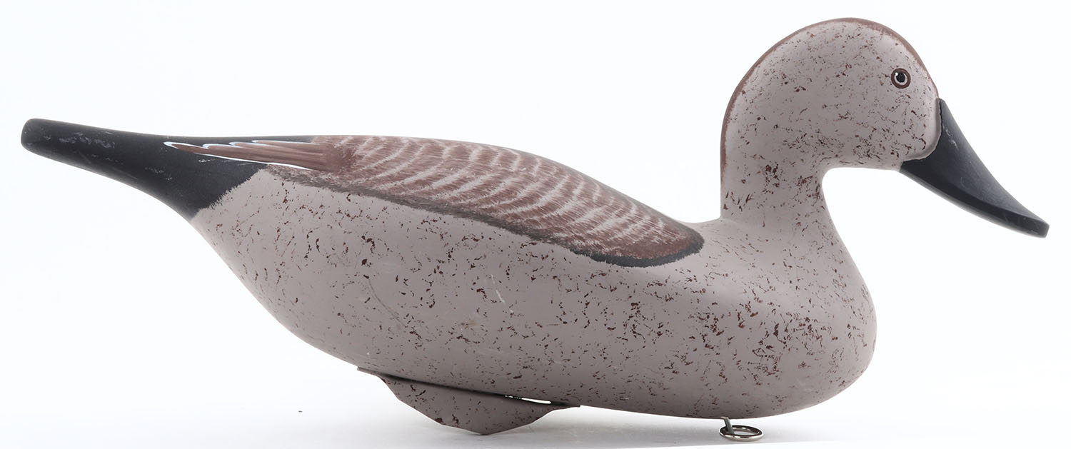 Gadwall Hen by Jeff Spencer from MD, PE, solid wood, original paint, branded on bottom, structurally excellent, 16 1/2'' OAL. Grade: Excellent ++ - Value: 40 to 80