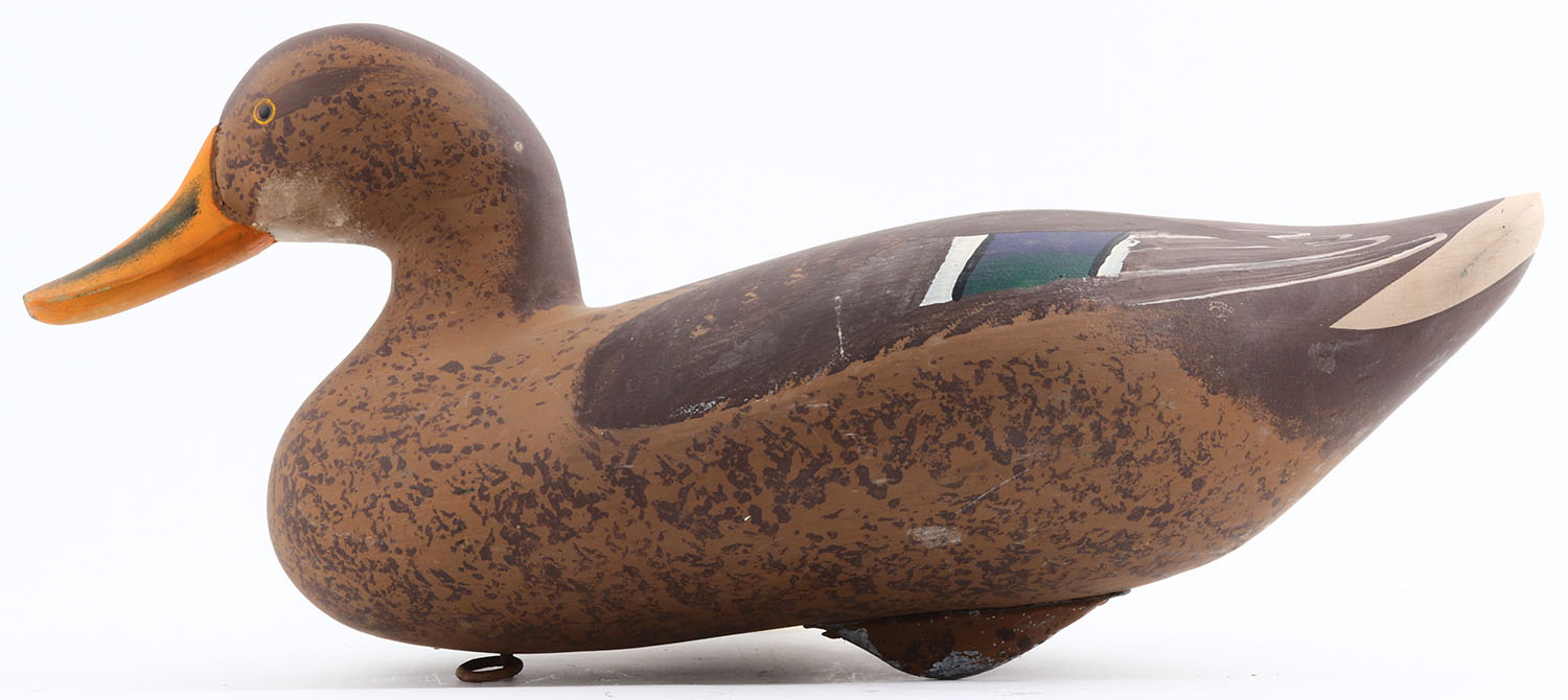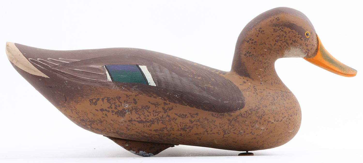 Mallard Hen by Unmarked, MD, painted eyes, hollow wood, original paint, structurally excellent, 16''. Grade: Excellent ++ - Value: 40 to 80