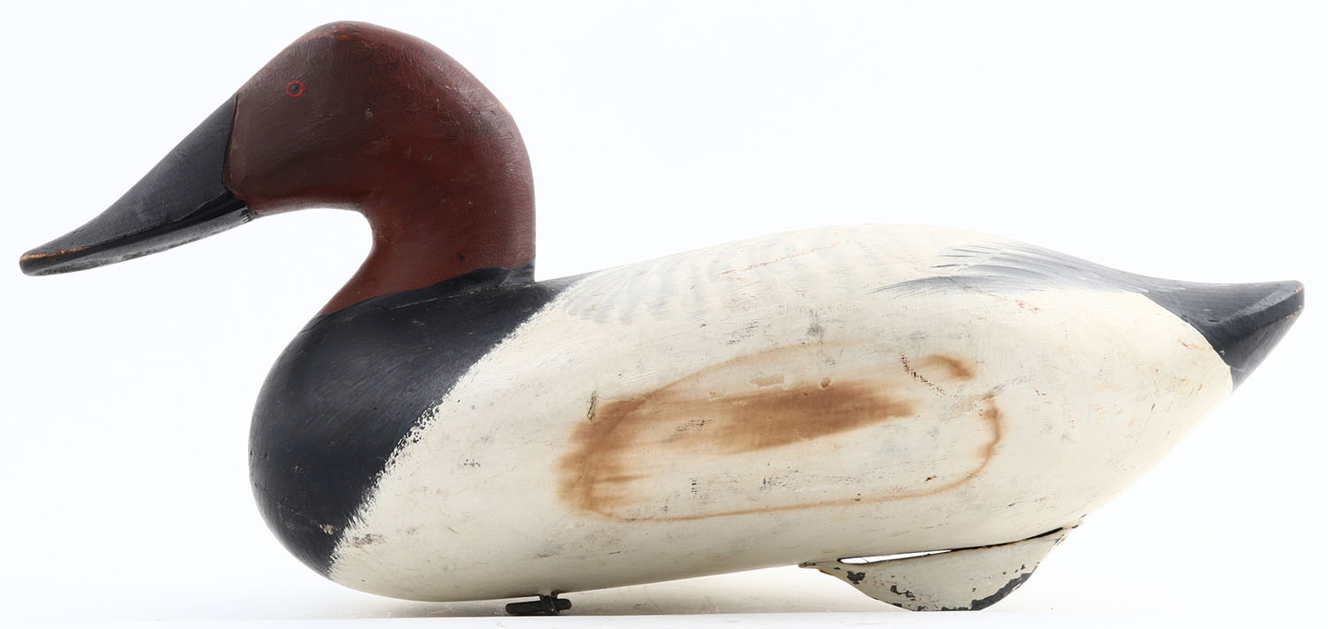 Canvasback Drake by unknown maker from, MD , painted eyes, solid wood, original paint, structurally excellent, 15'' OAL. Grade: Excellent - Value: 40 to 100