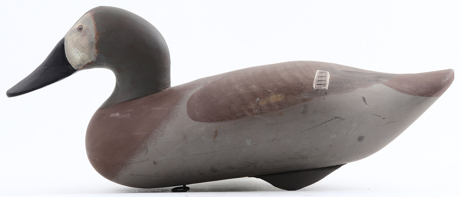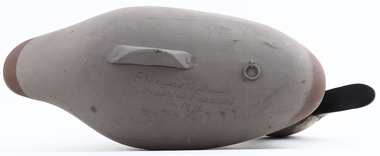 Canvasback Hen by Madison R. Mitchell, painted eyes, solid wood, original paint, structurally excellent, 17'' OAL. Grade: Excellent - Value: 70 to 150