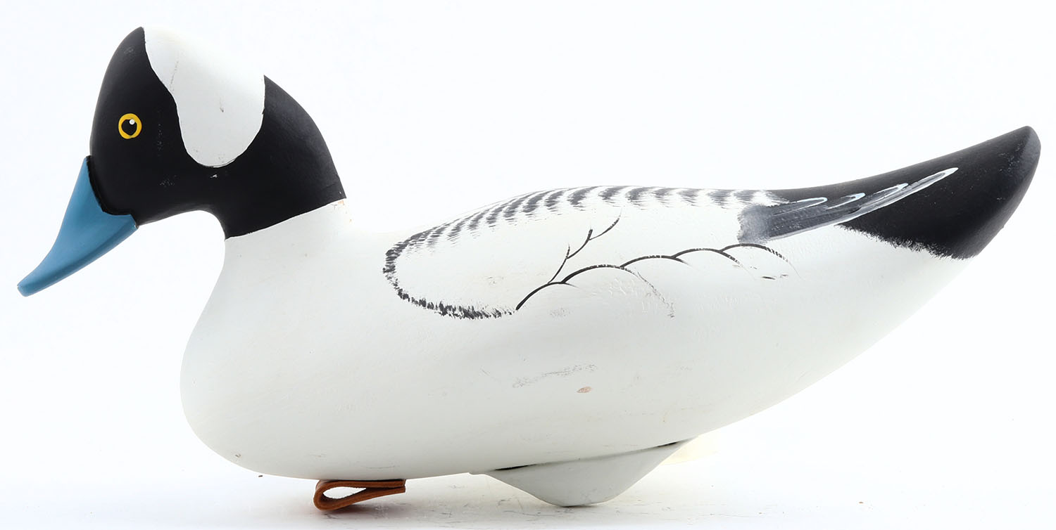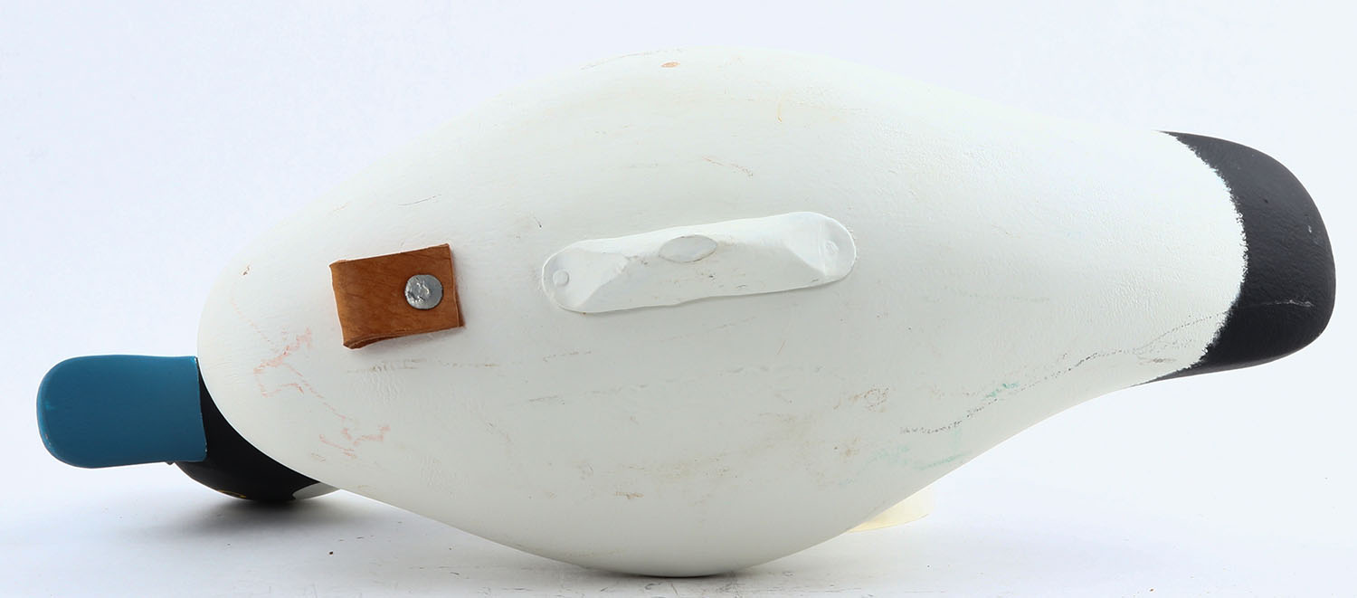 Bufflehead Drake by Jeff Spencer from MD, PE, solid wood, original paint, branded on bottom, structurally excellent, 14'' OAL. Grade: Excellent ++ - Value: 40 to 80