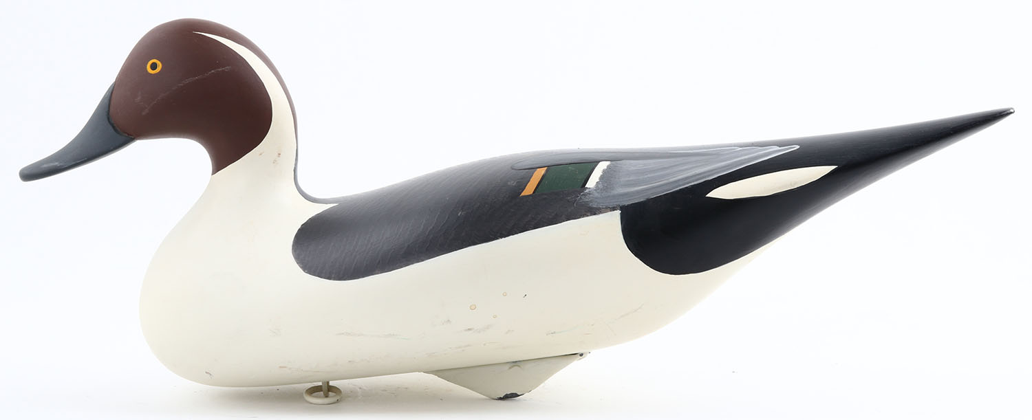 Pintail Drake by Andy Zielinski, Chase, MD, painted eyes, solid wood, original paint, structurally excellent, signed on bottom, 18''. Grade: Excellent ++ - Value: 30 to 60
