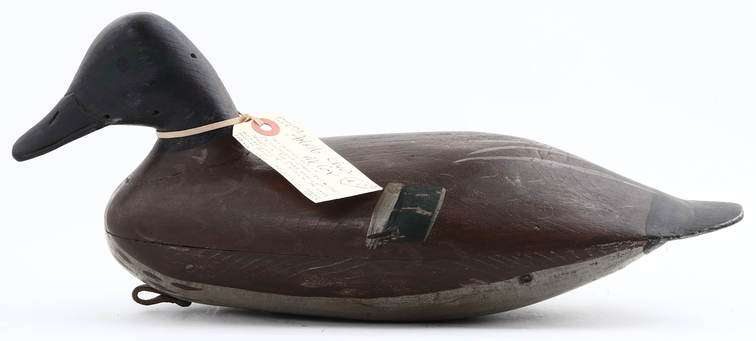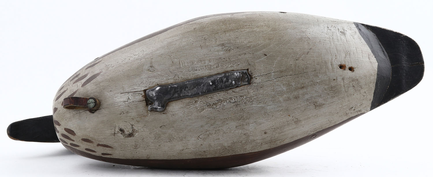 Miniature Canvasback by Michael & Susan Veasey, Delaware, GE, solid wood, original paint, structurally excellent, signed on bottom by maker, 11'' OAL. Grade: Excellent + - Value: 30 to 60