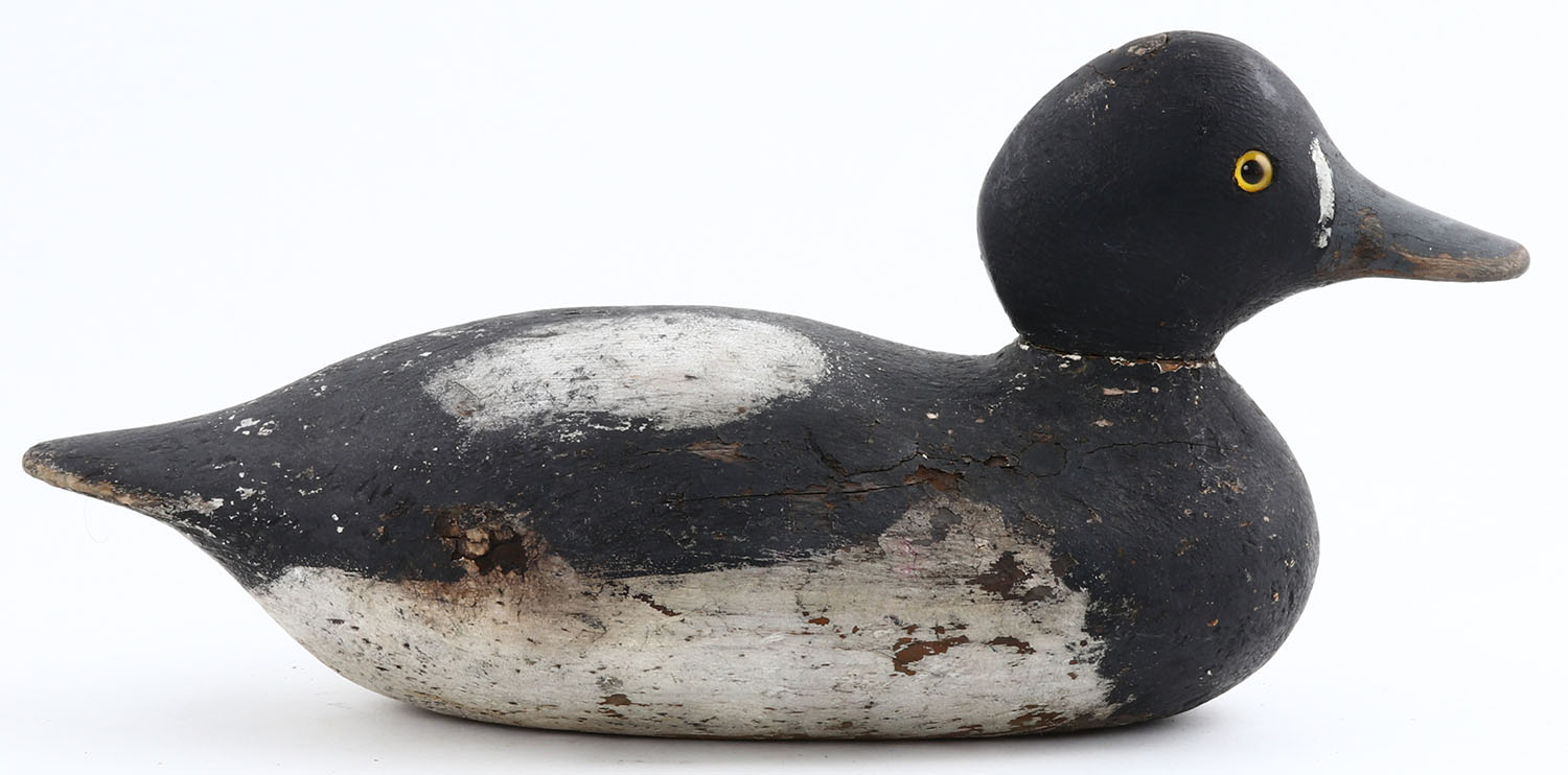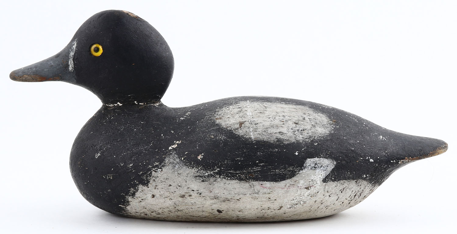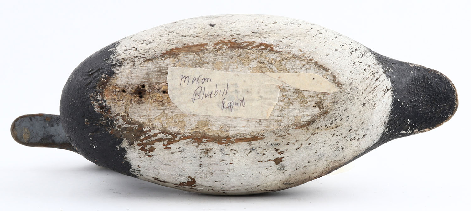 Standard Blue Bill Drake by Mason Decoy Company, Detroit, MI, 1896-1924. Glass eyes, solid wood, working repaint, structurally excellent. Grade: Very Good - Value: 30 to 100
