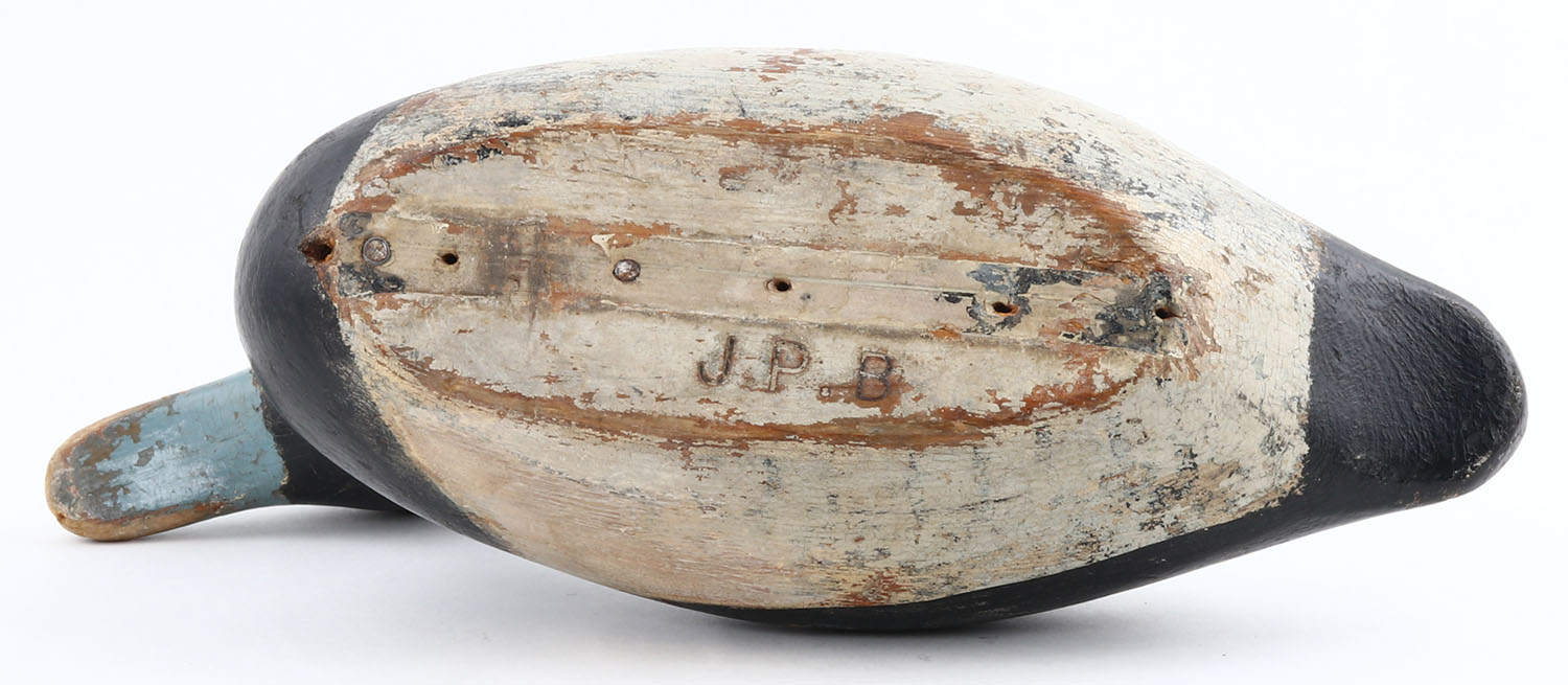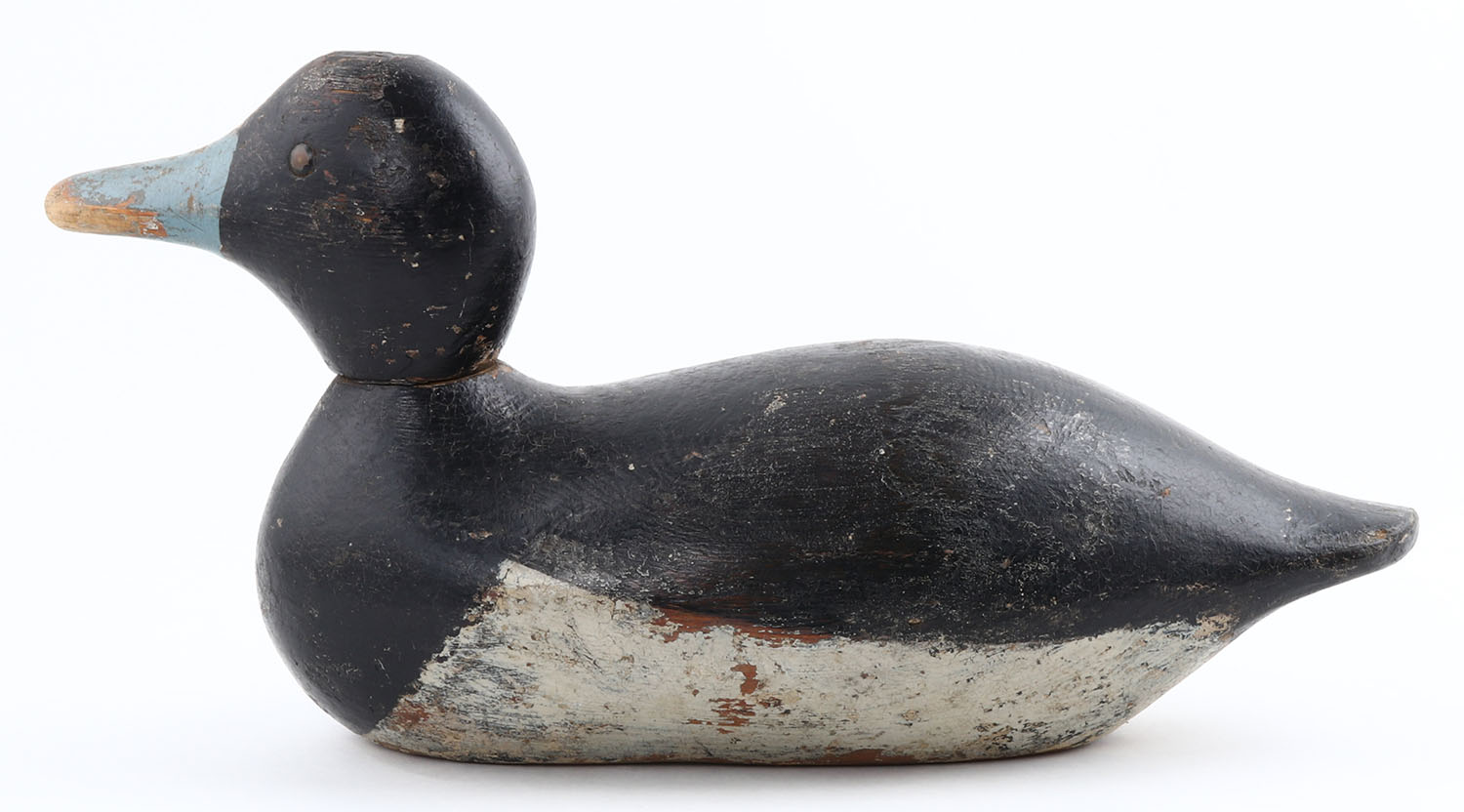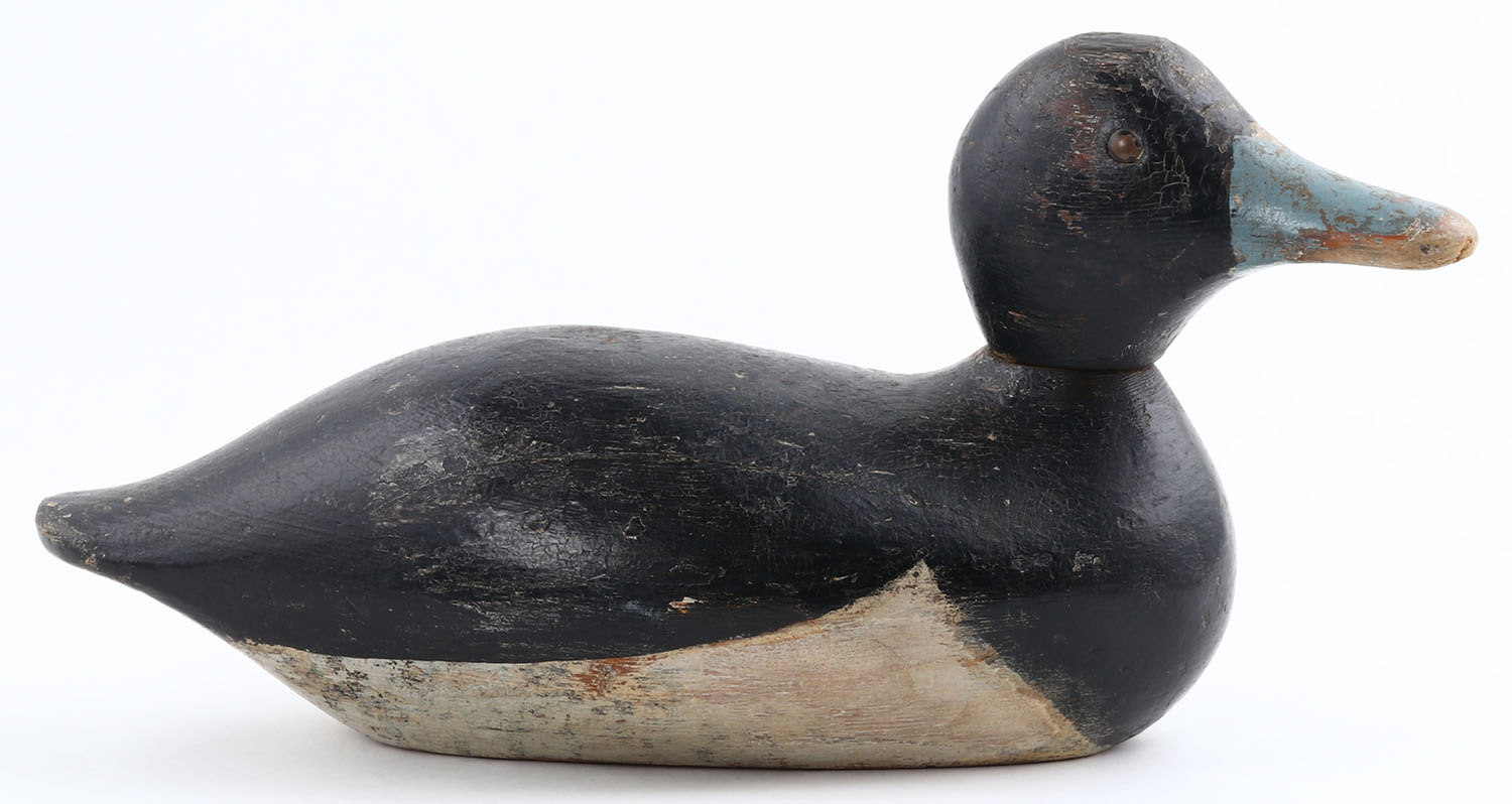 Bluebill Drake by unknown maker, TE, solid wood, original paint, structurally excellent, 12'' OAL. Grade: Excellent - Value: 40 to 80