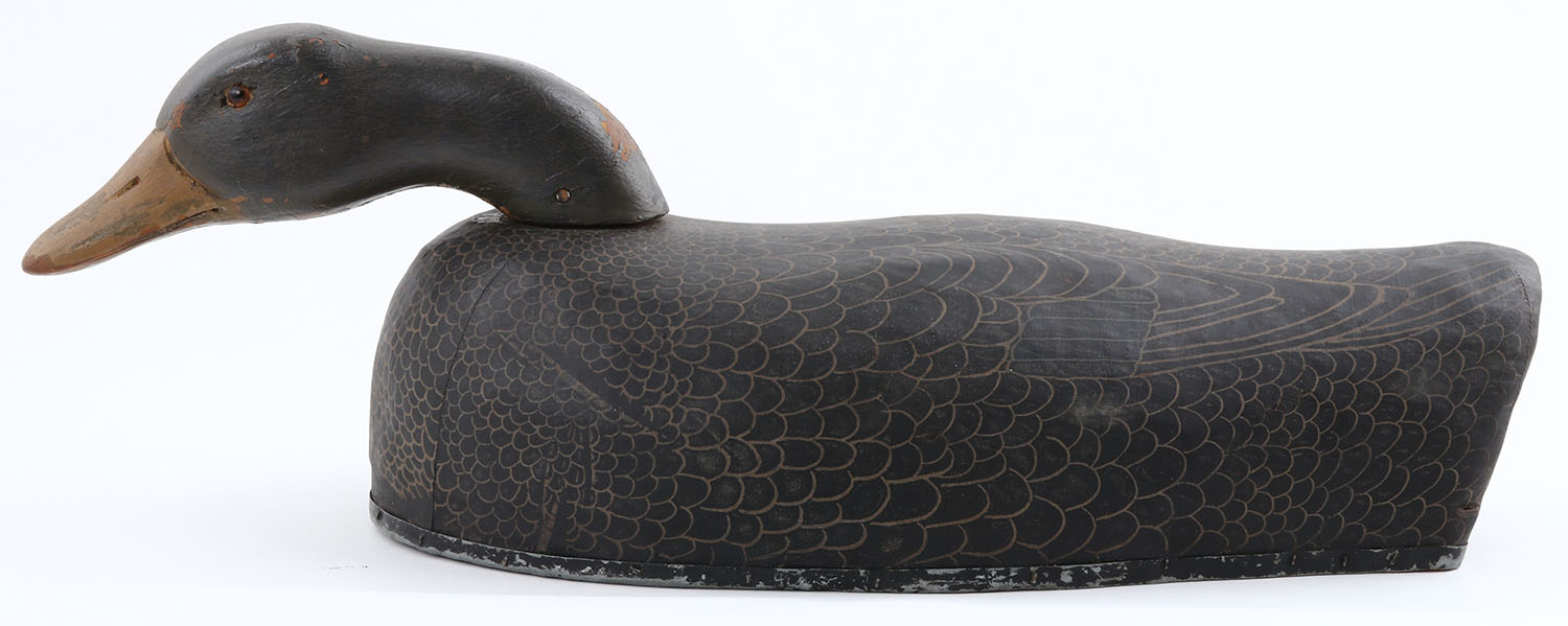 Early Preening Hen Mallard by Herters Decoy Co., Waseca, MN, glass eyes, canvas over cork, original paint, structurally excellent. Grade: Excellent - Value: 40 to 100