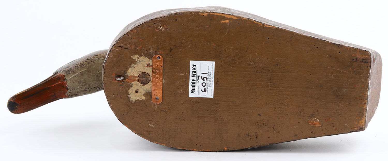 Early Hen Mallard by Herters Decoy Co., Waseca, MN, glass eyes, canvas over cork, original paint, structurally excellent. Grade: Excellent - Value: 40 to 100