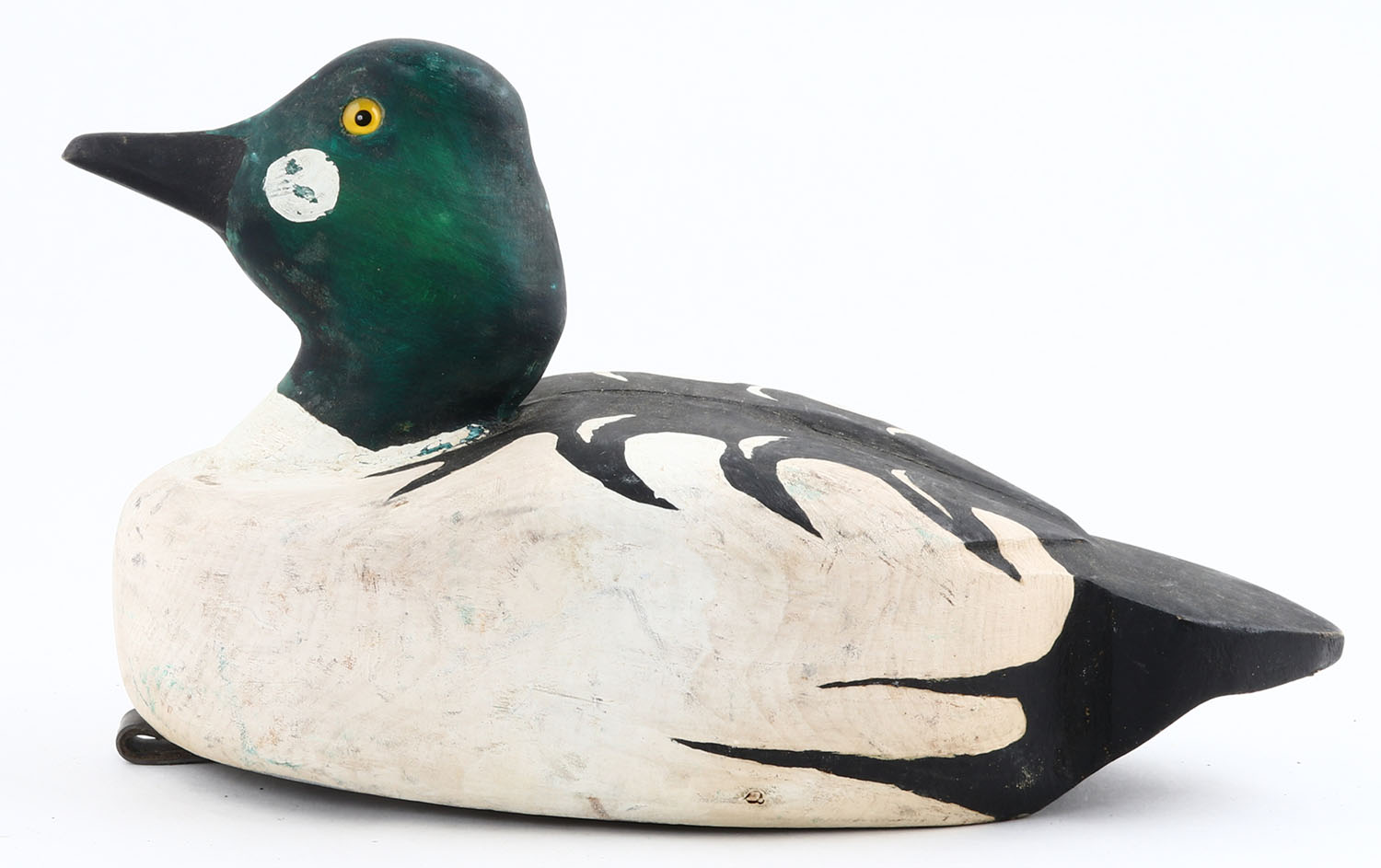 Goldeneye Drake by Dudley Showler, Gananoque, Ont., GE, solid wood, original paint, structurally excellent, 12'' OAL. Grade: Excellent - Value: 30 to 60