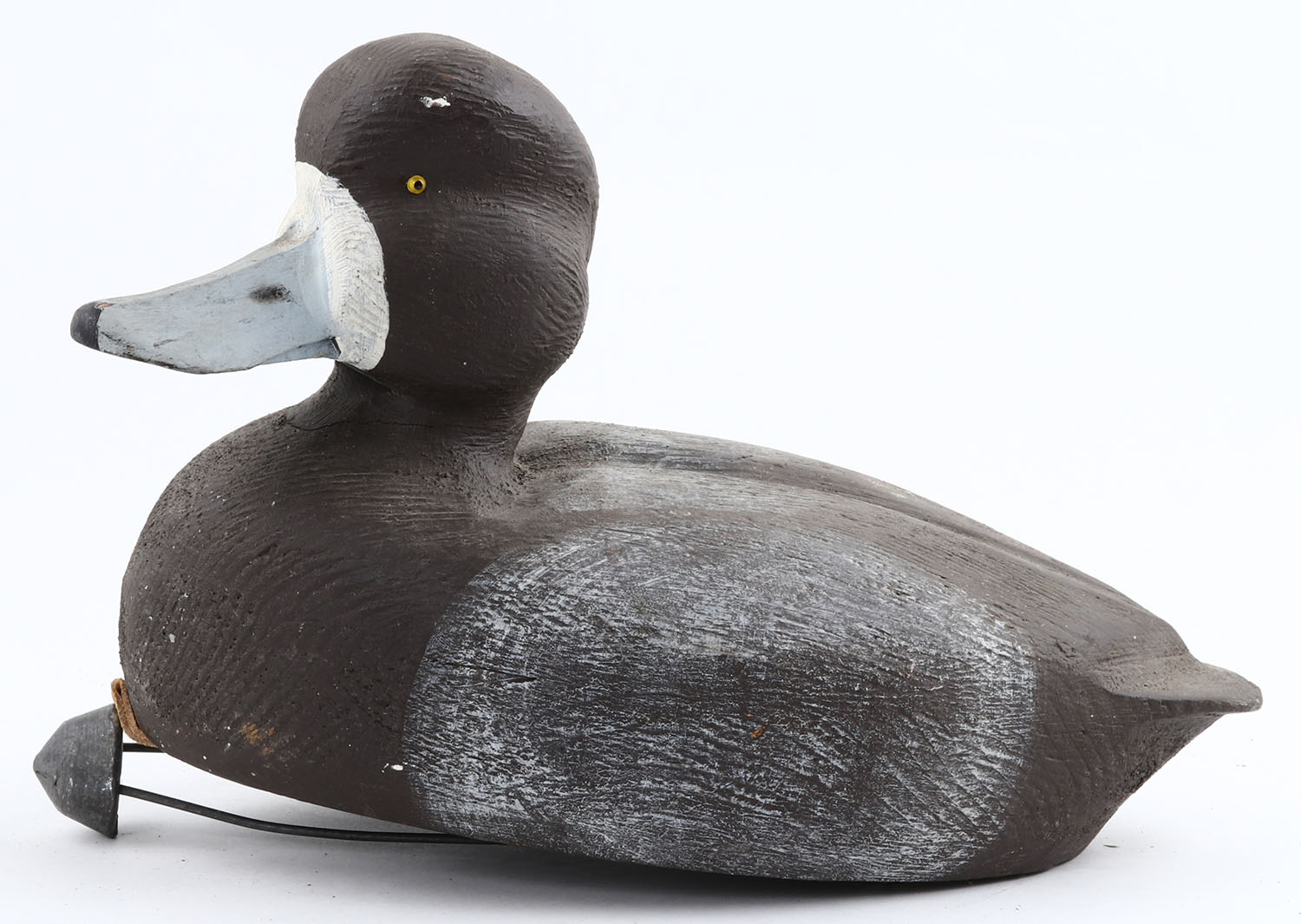 Bluebill Hen by unknown maker, branded T. Brooks, GE, hollow wood, original paint, has swing weight, structurally excellent. Grade: Excellent - Value: 40 to 80