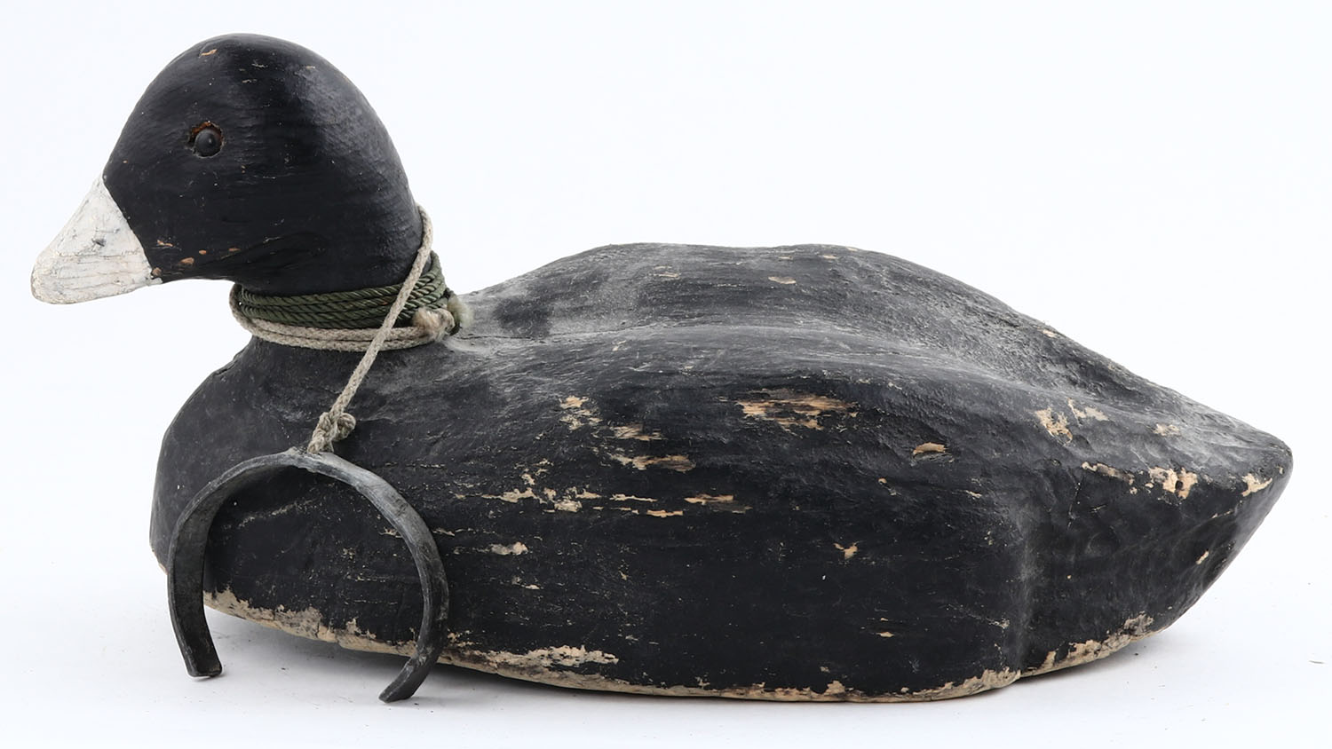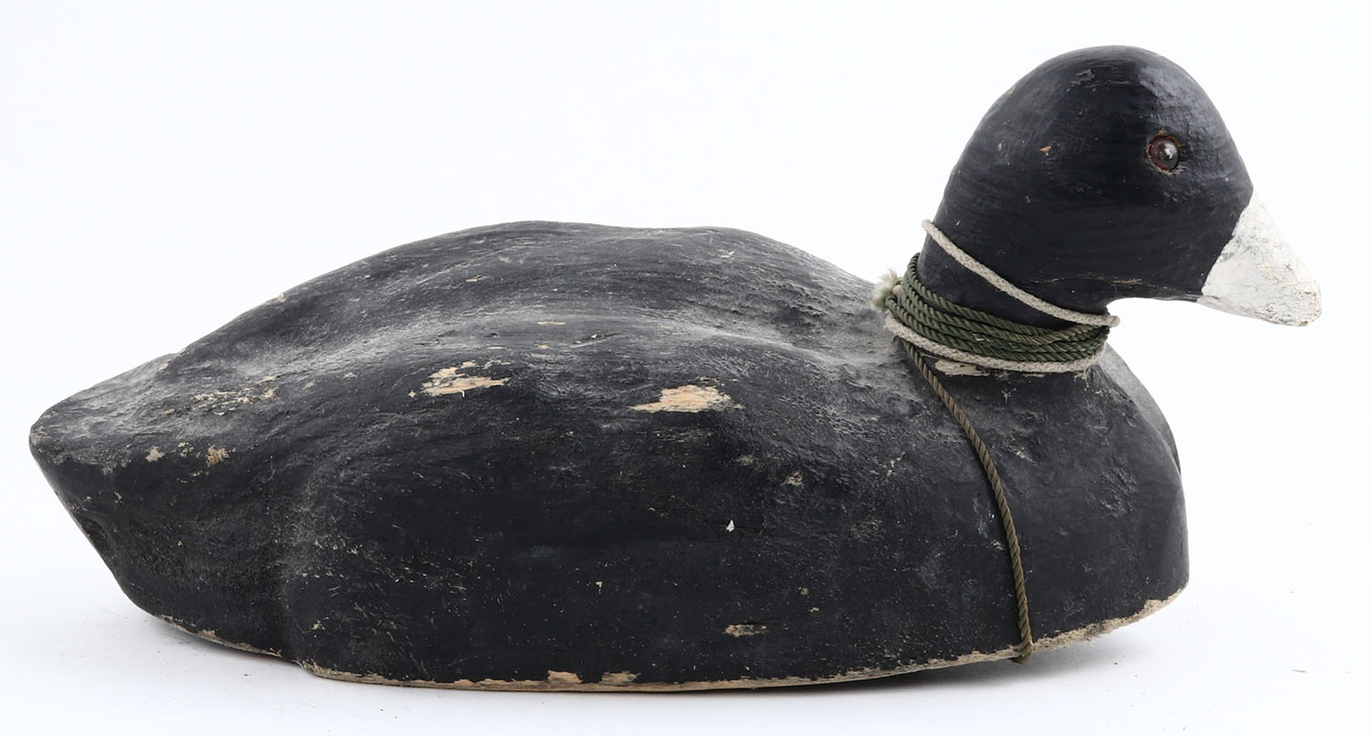 Coot by Herter's??, GE, solid balsa wood, original paint, structurally excellent. Grade: Very Good ++ - Value: 20 to 60