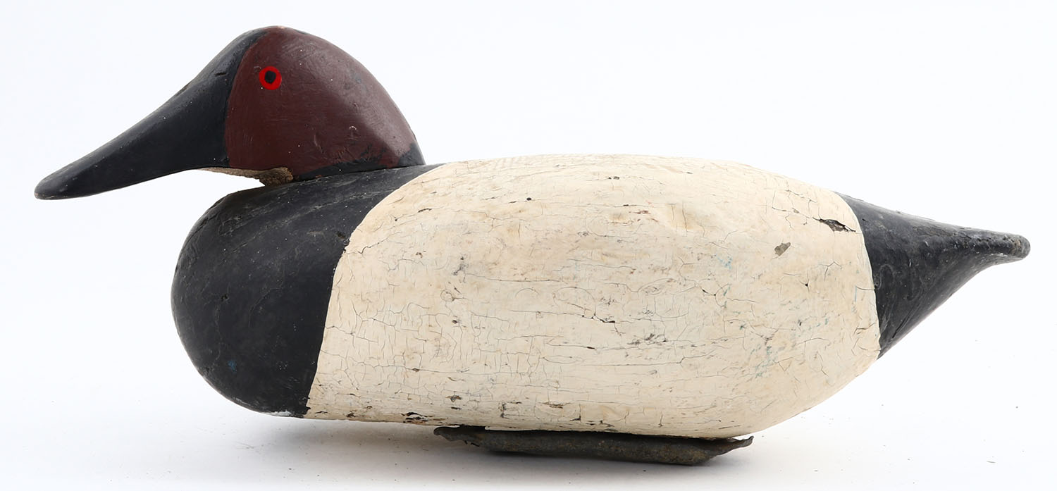Canvasback Drake by unknown maker, PE, solid wood, repaint, structurally excellent. Grade: Excellent - Value: 20 to 60
