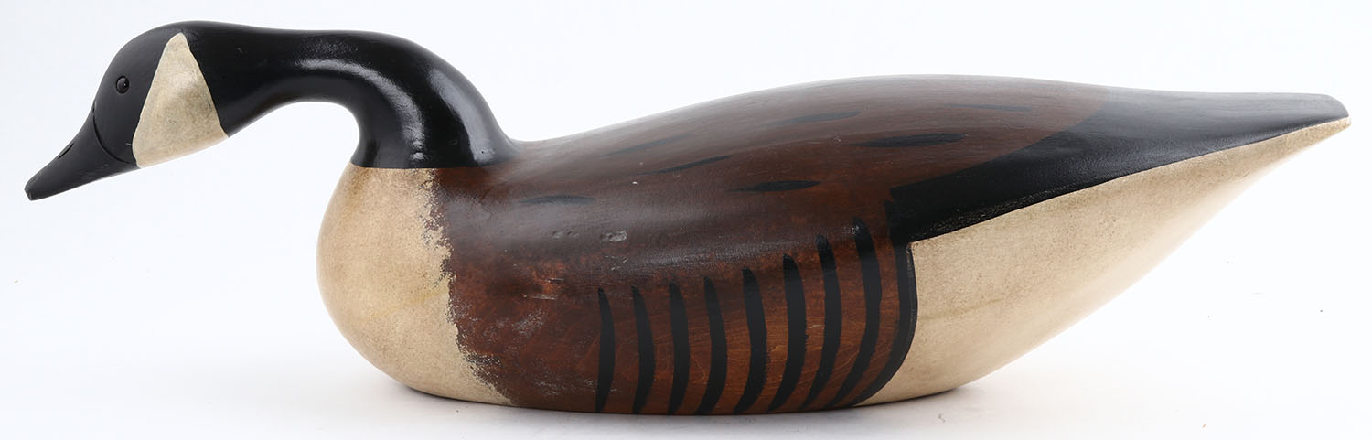 Swimming Canada Goose by Hadlby Co., GE, solid wood, original paint, structurally excellent, 22'' OAL. Grade: Excellent ++ - Value: 30 to 90