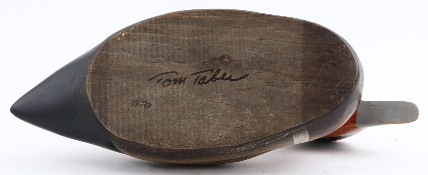 Greenwing Teal Drake by Tom Taber, GE, solid wood, original stain, structurally excellent. Grade: Excellent ++ - Value: 20 to 60