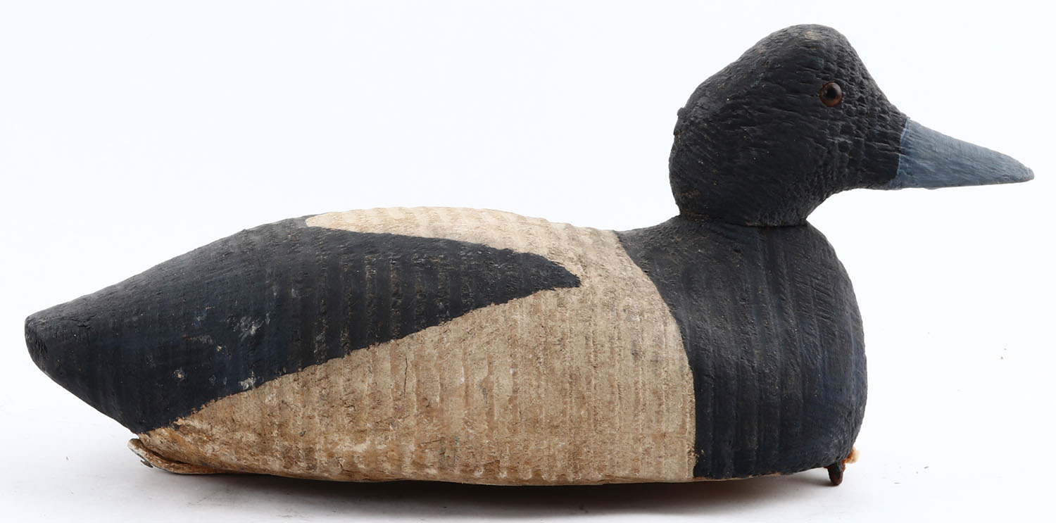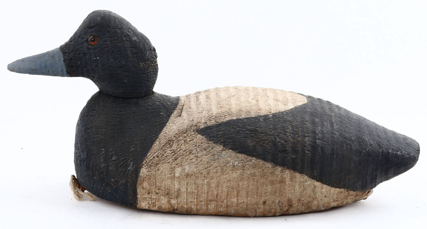 Bluebill Drake by Pascagoula Decoy Co, GE, solid wood, nice original paint, structurally excellent. Grade: Excellent + - Value: 40 to 80