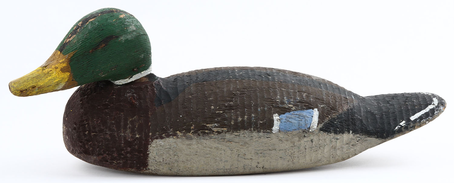 Black Duck by a Victor factory unmarked, no eyes and replaced head, solid wood, old repaint, 16 1/2'' OAL. Grade: Very Good - Value: 6 to 30
