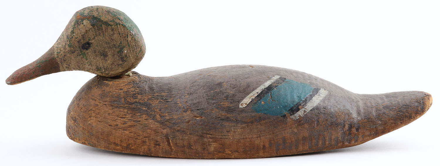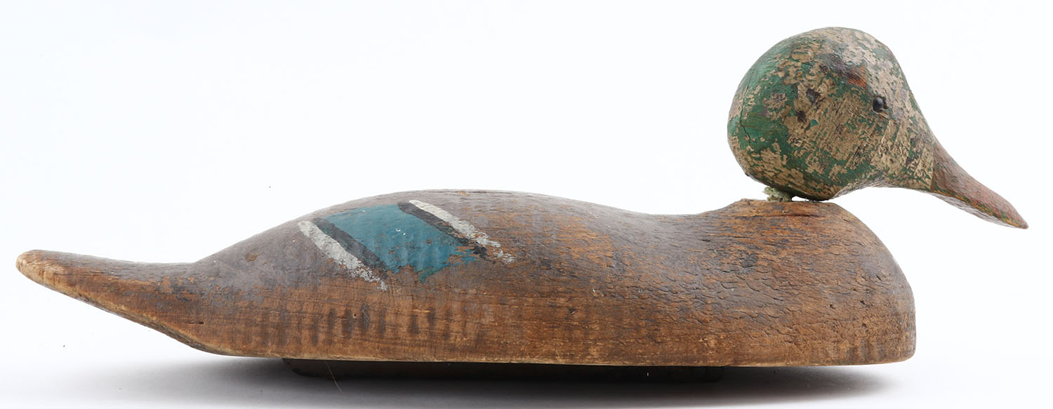 Mallard Drake by unknown maker, TE, solid wood, worn original paint. Grade: Very Good - Value: 6 to 30