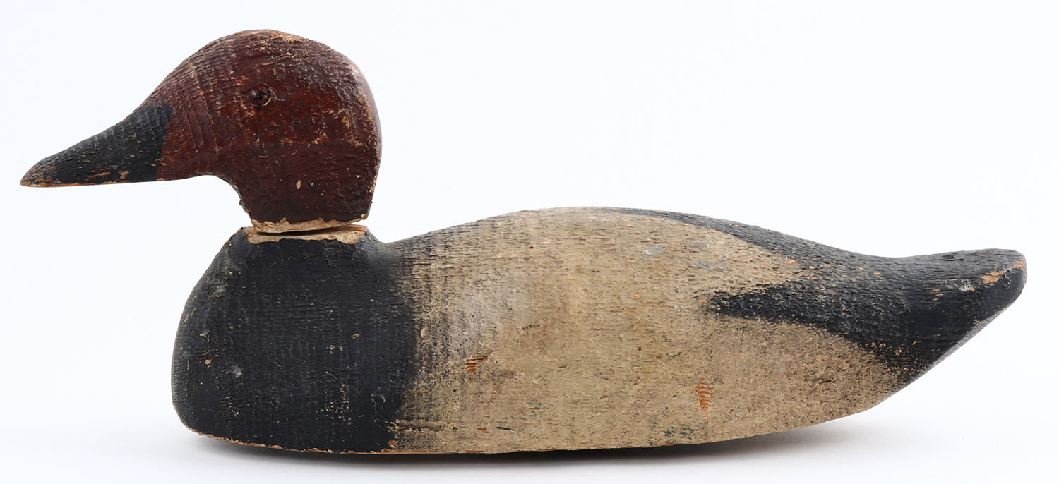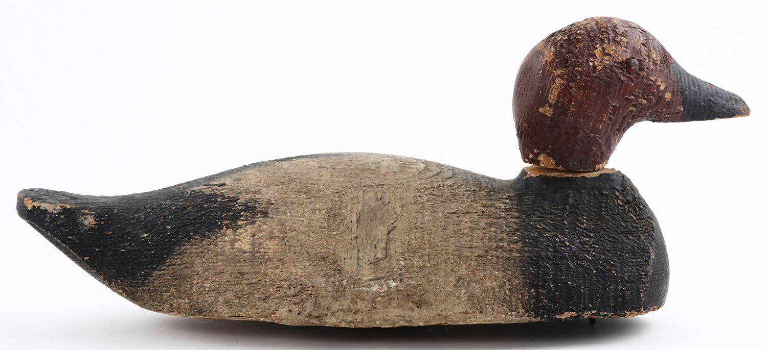 Canvasback Drake by unknown maker, TE, solid wood, original paint, structurally excellent Grade: Very Good ++ - Value: 10 to 40