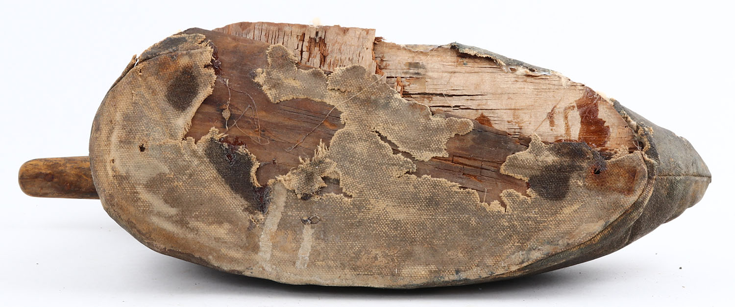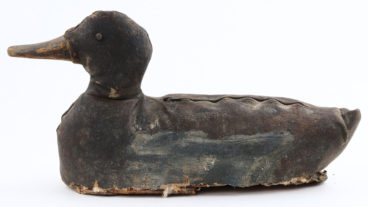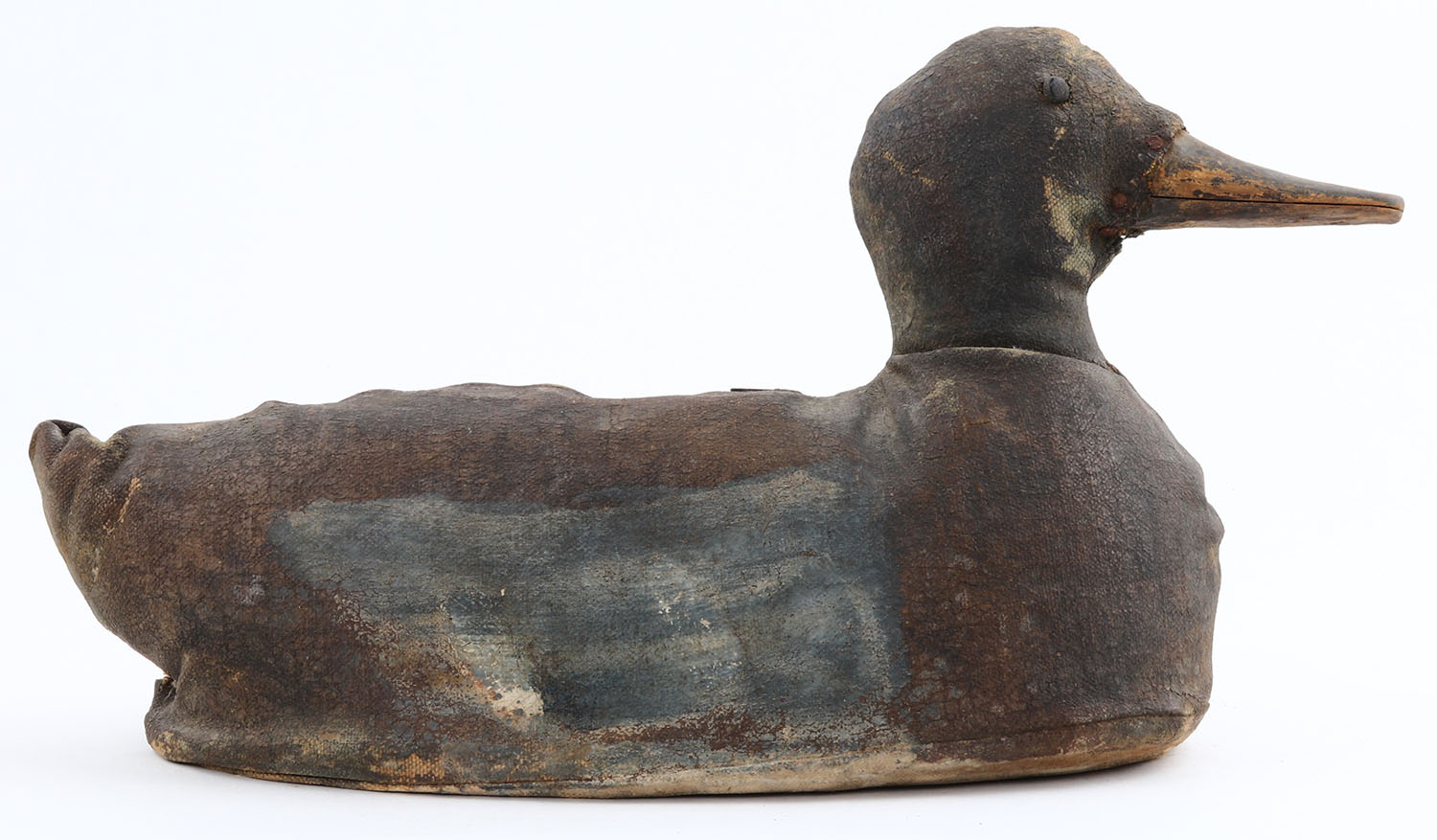 Mallard Drake by unknown maker, TE, stuffed canvas with a zipper on top, original paint, has some wear to bottom. Grade: Very Good - Value: 10 to 60