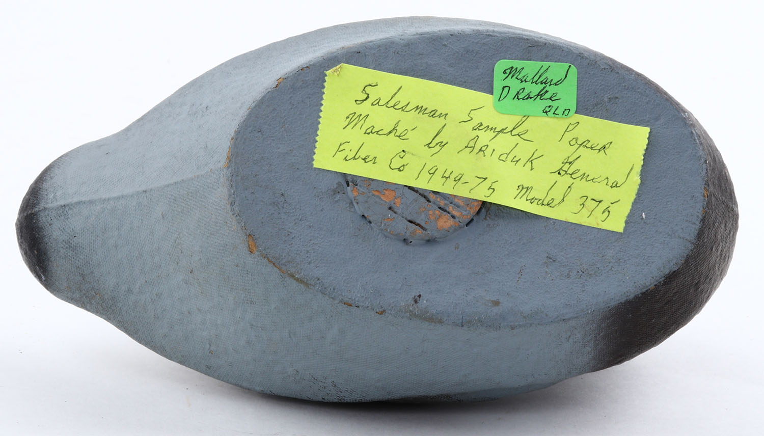 SALESMAN SAMPLE Mallard Drake by Ariduk General Fiber Co, Model 375, circa 1949-1975, PE, mint original paint, this is the larger size of the salesman samples, 7'' OAL. Grade: Excellent ++ - Value: 40 to 200