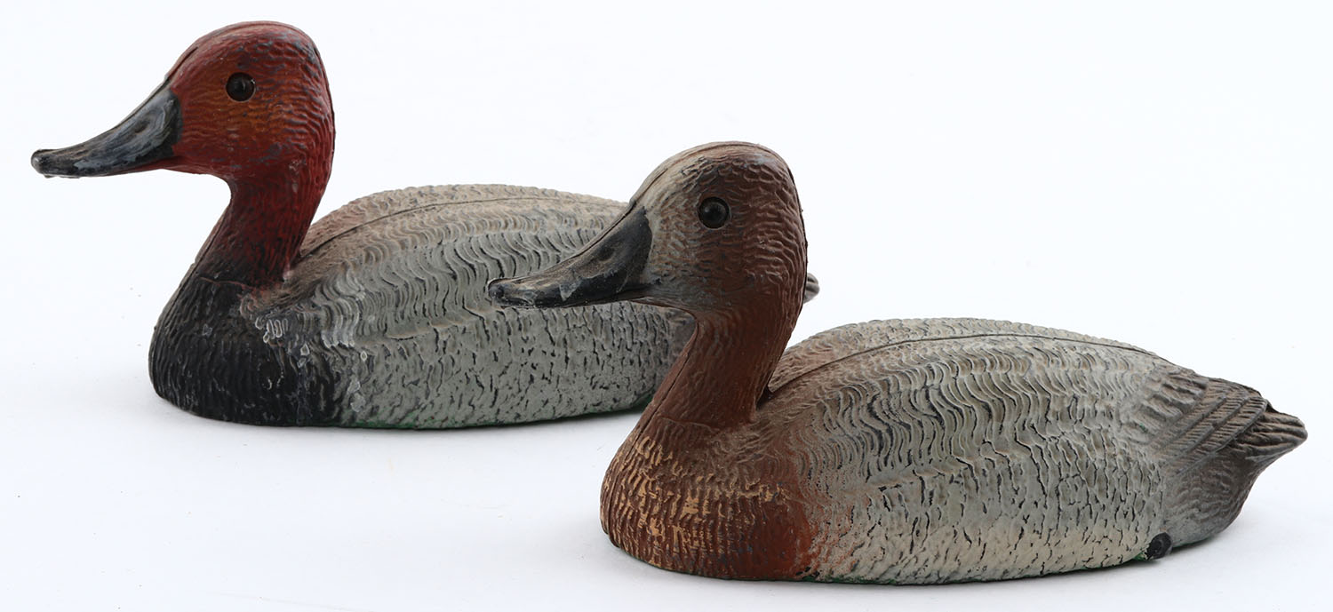 Pair of SALESMAN SAMPLE Redheads by Sport Plast or Carry Lite, PE, mint original paint, 6'' OAL. Grade: Excellent ++ - Value: 20 to 60