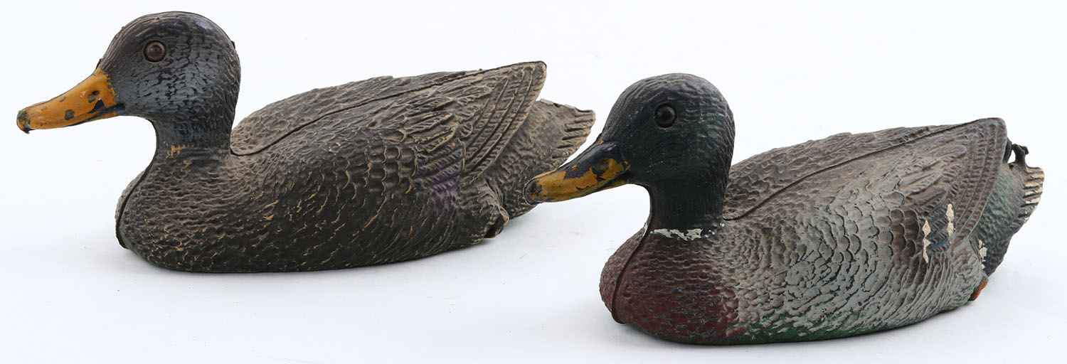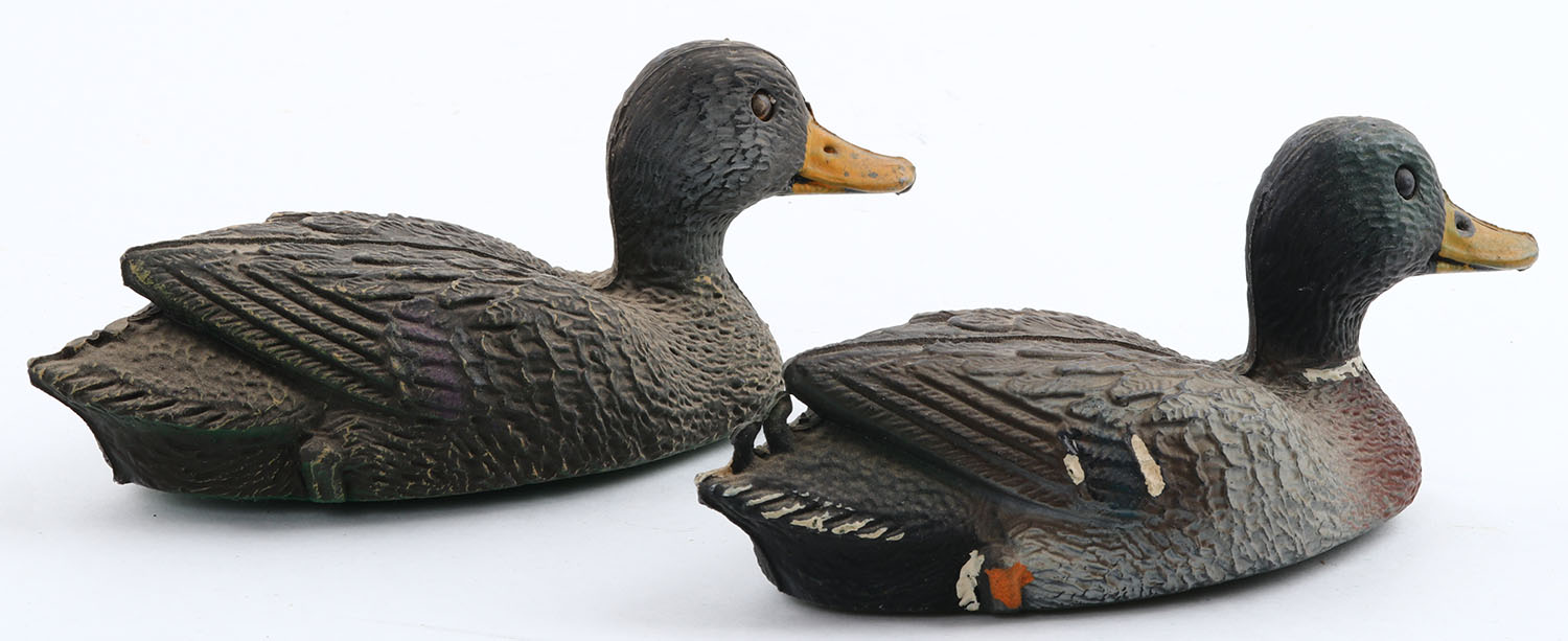 Pair of SALESMAN SAMPLE Mallards by Sport Plast or Carry Lite, PE, mint original paint, 6 1/2'' OAL. Grade: Excellent ++ - Value: 20 to 60