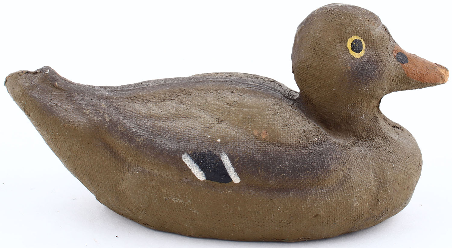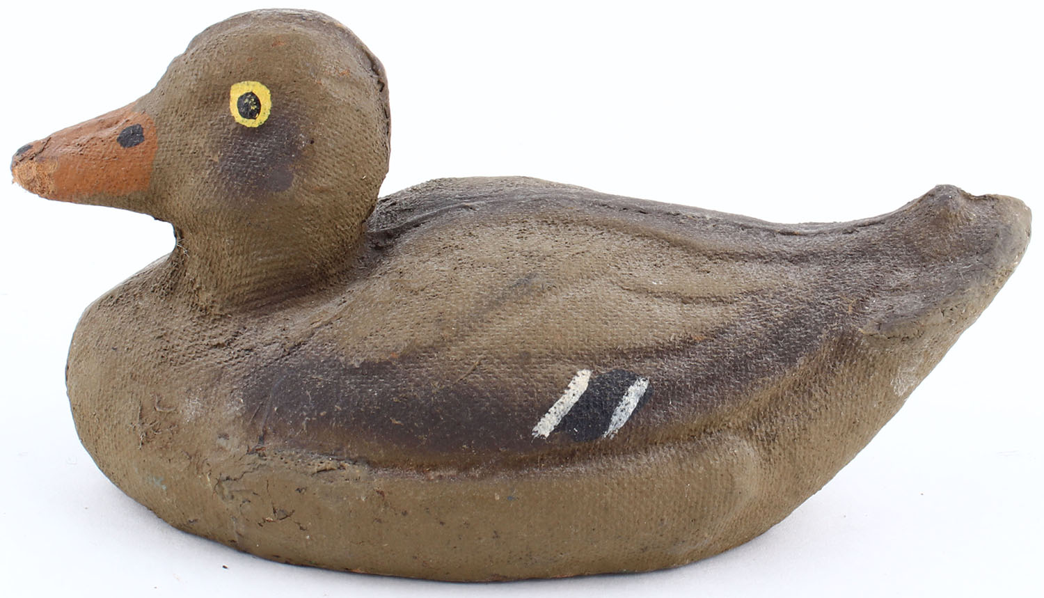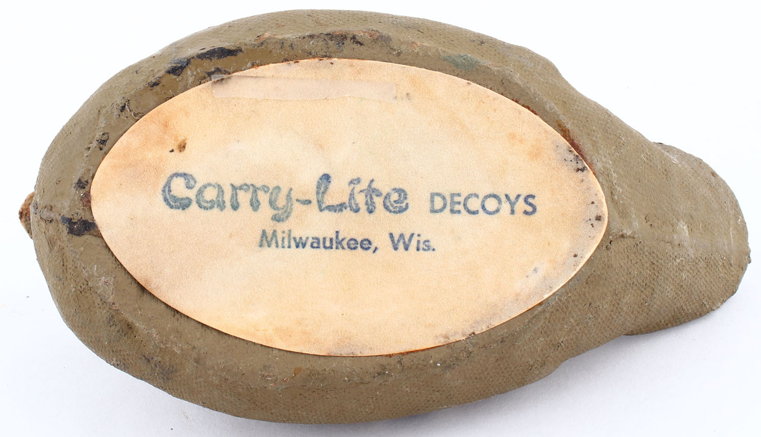 SALESMAN SAMPLE Mallard Hen by Carry-Lite Decoys, PE, mint original paint, has labels on bottom with wood inserts, 5'' OAL. Grade: Excellent - Value: 20 to 60