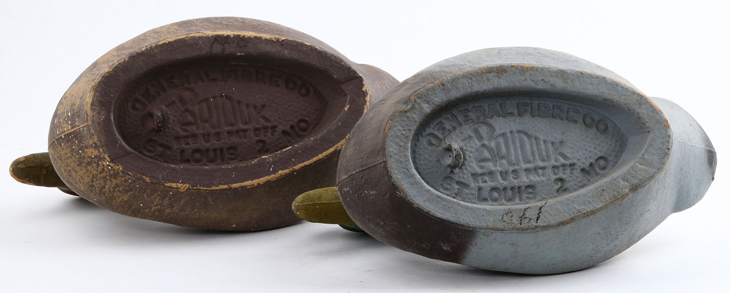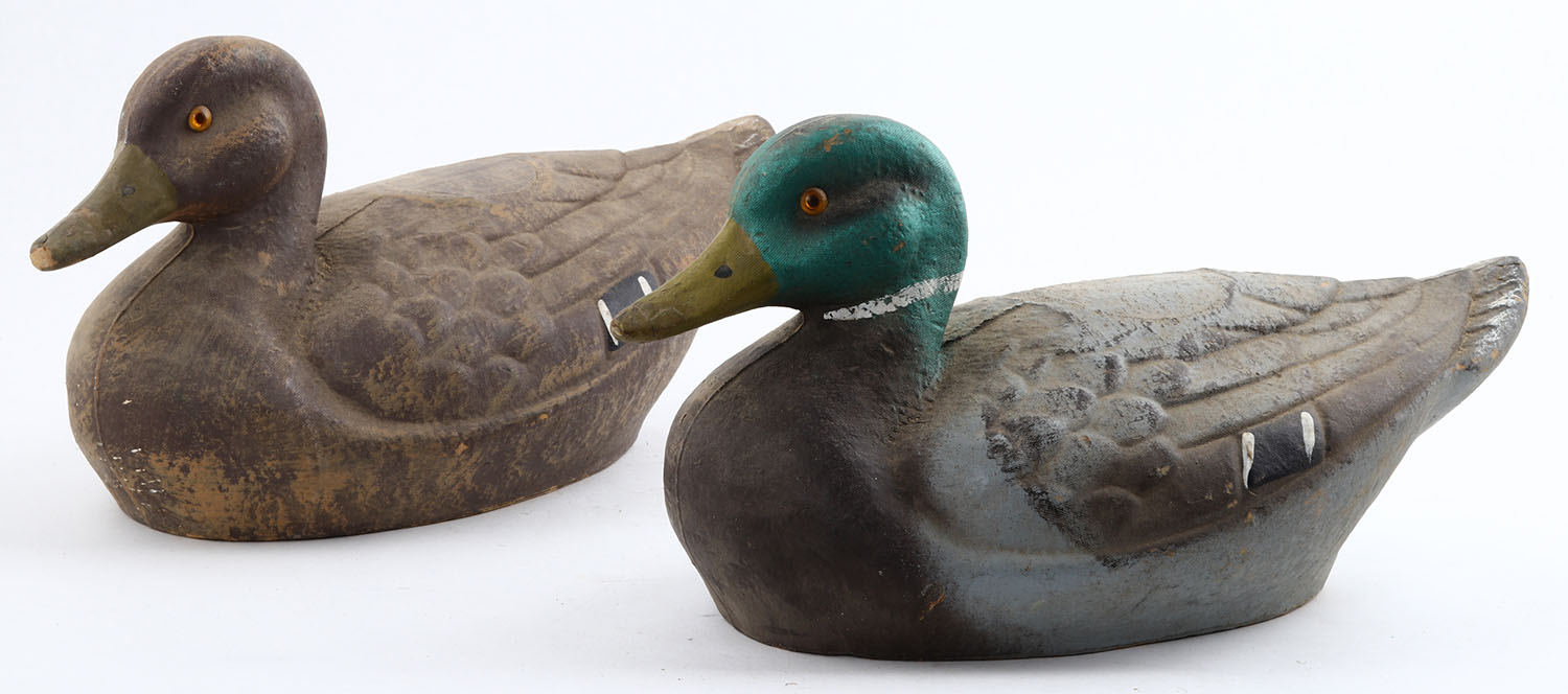 Pair of Mallard Aruduk decoys, paper mache'. Grade: Excellent - Value: 2 to 10