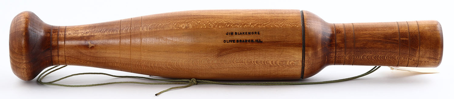Large Salesman Sample Goose call by Jim Blakemore, Olive Branch, IL, 22'' OAL, has great sound, all one piece. Grade: Excellent ++ - Value: 70 to 250