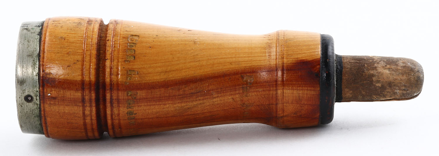 Charles Perdew Crow Call, Henry, ILL, well marked on cedar barrel, 5'' has great sound. Grade: Excellent - Value: 100 to 250