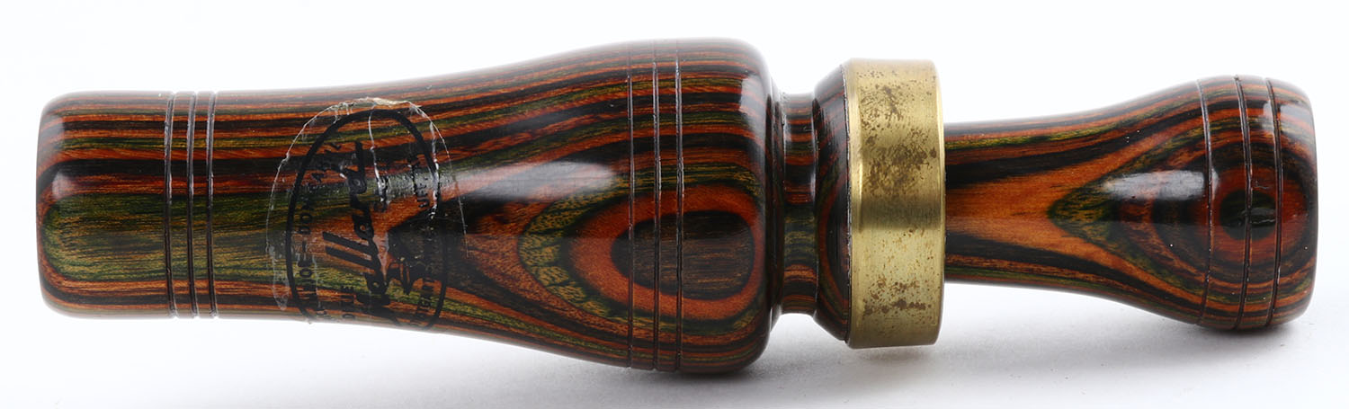 Chick Majors (Don Cahill, Son-In-Law) Dixie Mallard Duck Call, Morrilton, AK, 1896-1974, marked with sticker on barrel, plastic reed, 5 1/2'' OAL, laminated wood, nice finish. Grade: Excellent - Value: 70 to 150